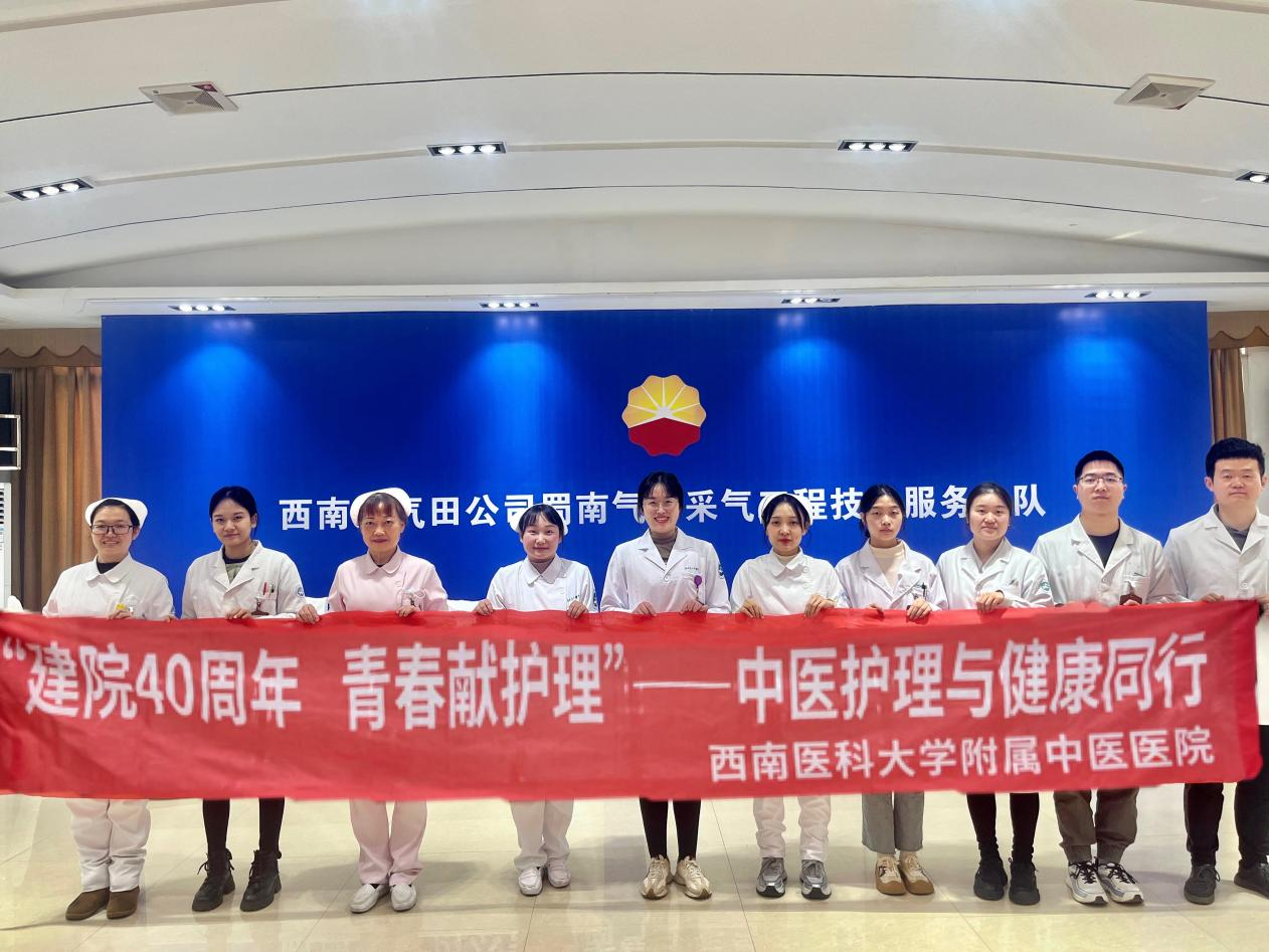 2023年12月20日,我院护理部、体检中心、客户服务中心、乳腺·甲状腺·血管外科、呼吸内科等科室医护人员到蜀南气矿开展了“建院40周年中医药服务进企业”主题义诊活动。