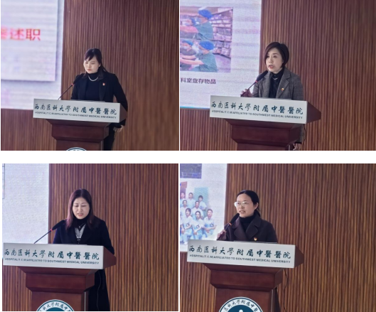会上,46个科室护士长从科室亮点工作、护理人才队伍建设、护理质量与安全管理、中医护理工作、护理教学与科研、党风廉政工作及意识形态工作、个人述职述廉等方面进行了工作述职。