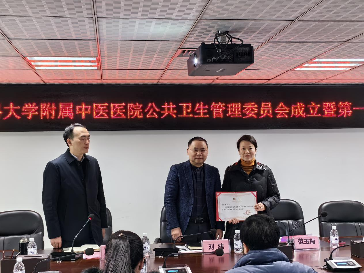 刘建宣读了公共卫生管理委员会副主任委员聘任文件,并为范玉梅颁发了聘书。