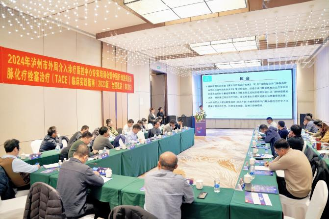 2024年 3月 2日,由泸州市外周介入诊疗医疗质量控制中心主办,我院放射影像科介入诊疗组承办的“2024年泸州市外周介入诊疗质控中心专家培训会暨中国肝细胞癌经动脉化疗栓塞治疗(TACE)临床实践指南(2023版)全国巡讲(四川站)”在泸州举办,50余名来自成都、宜宾、自贡、内江、泸州等地的外周介入诊疗领域专家和同仁参加了会议。
