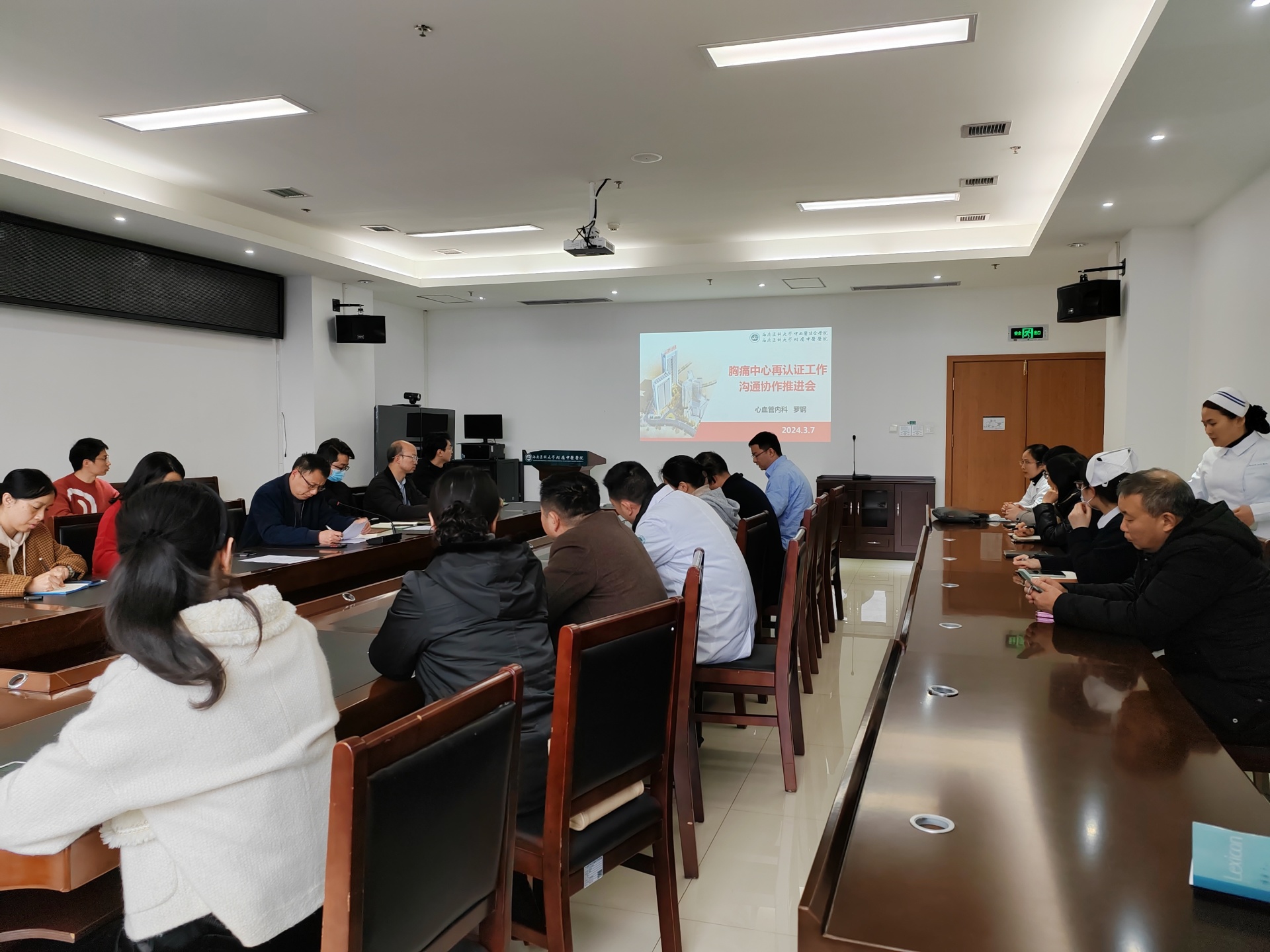 2024年3月7日,我院召开了2024年胸痛中心再认证工作布置会,相关临床科室及职能部门人员参加了会议。