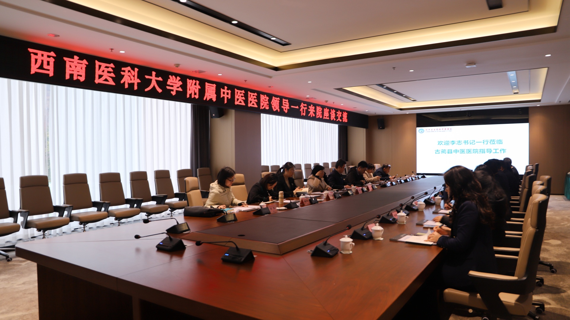下午4:00,李志书记、外科党总支书记张磊一行来到古蔺县中医医院。古蔺县中医医院党委书记陈锐、院长王泽琛等班子成员及相关人员等参加了座谈会。