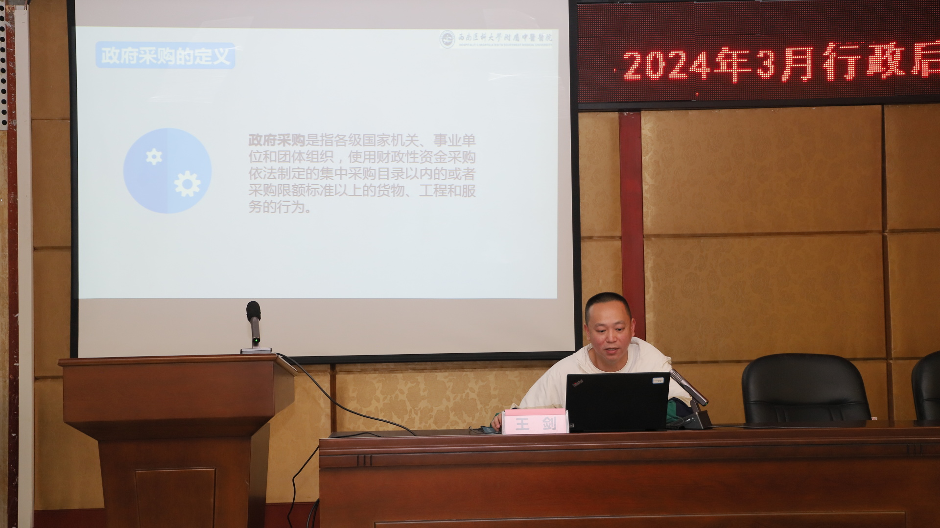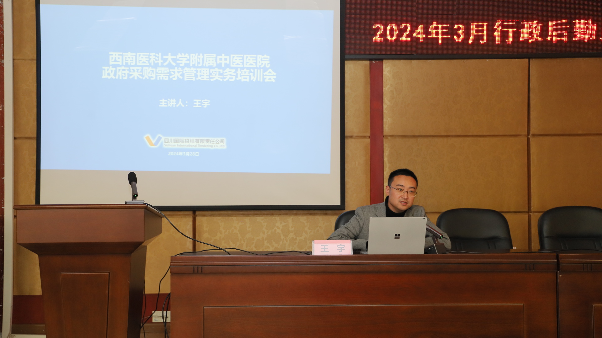 会上,为我院提供采购服务的社会代理机构四川国际招标有限责任公司客户总监王宇围绕政府采购需求管理、政府采购评审工作要点等进行了培训。