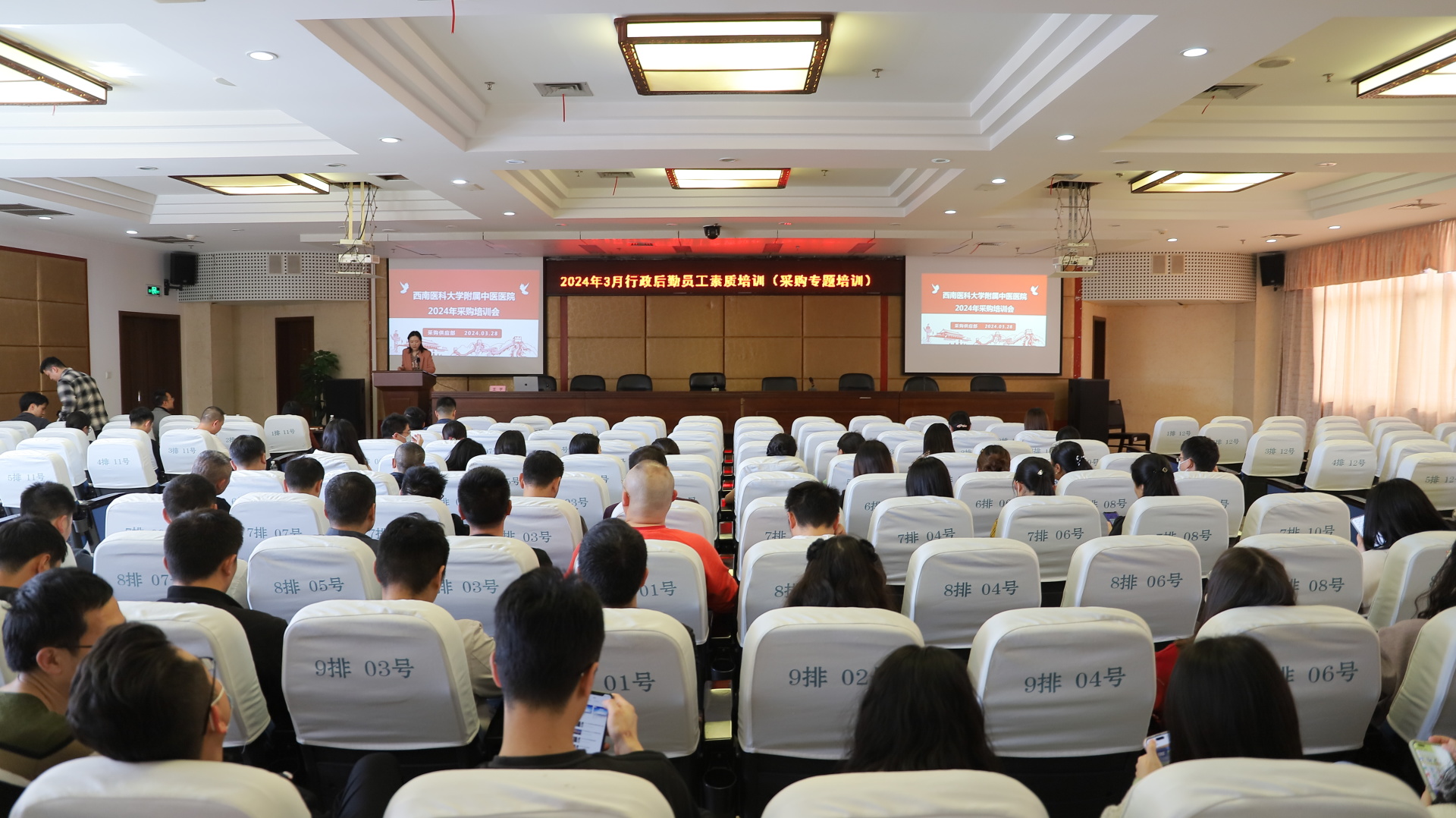 2024年3月28日,我院继续教育部联合采购供应部开展了采购专题培训,各部门(科室)负责人、院内评审专家、科室采购联络员以及行政后勤工作人员100余人参加了培训。