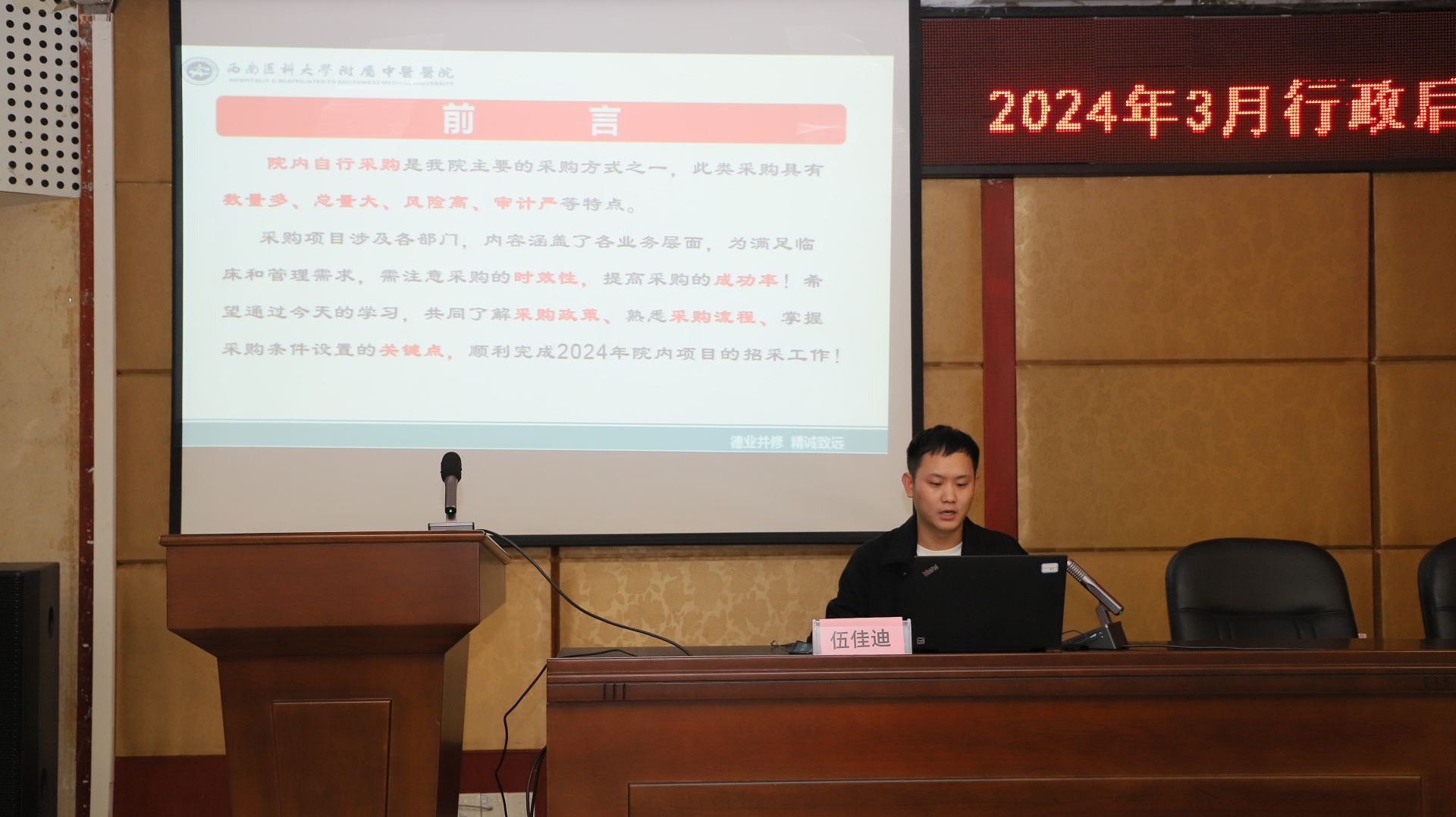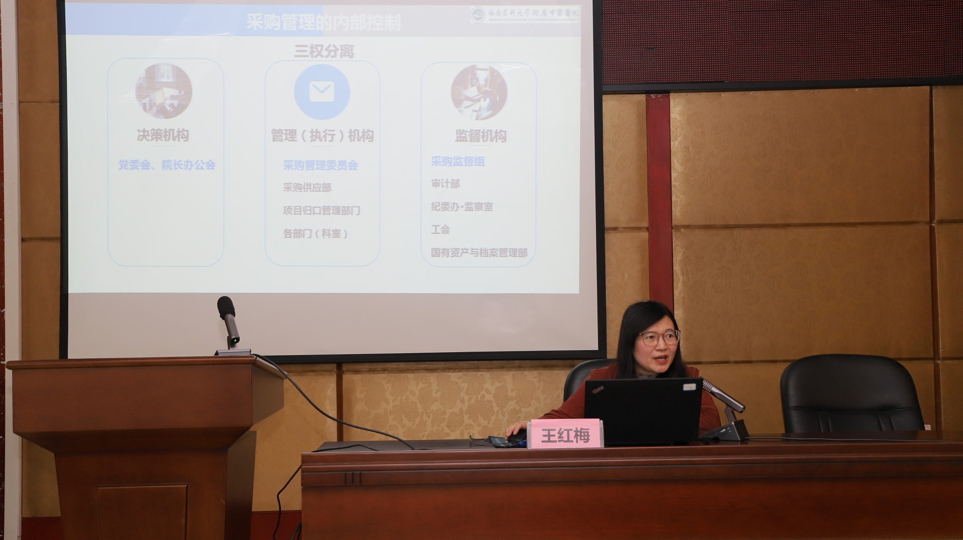 随后,采购供应部王红梅、王剑、伍佳迪对采购管理、政府采购、院内采购等相关政策作了讲解。