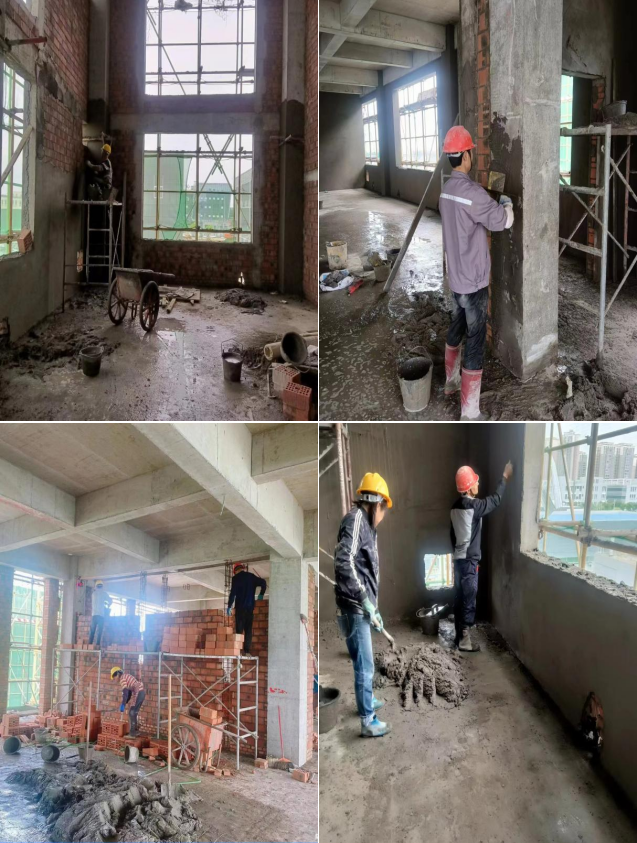 此外,在泸县区域中医药院内制剂研究转化中心,综合楼砖砌体施工,提取车间、制剂车间内墙抹灰施工等有序开展,平均每天作业人数达90人。