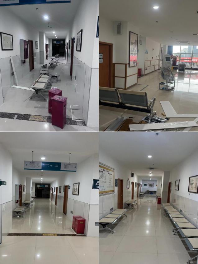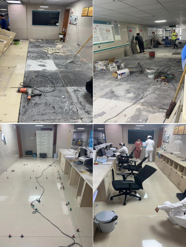 2024年5月1-5日国际劳动节期间,后勤基建部工作人员充分利用节假日,对医院门诊和影像楼车库地面进行了修补。同时在保证患者正常就医及临床辅检科室有序运行的情况下,工作人员利用休息时间更换了第三住院大楼21楼松动的地砖和门诊中央空调老旧管道,并对体检中心墙面新增墙板墙裙、行政楼五楼过道墙面、财务档案室房间进行了维护维修。