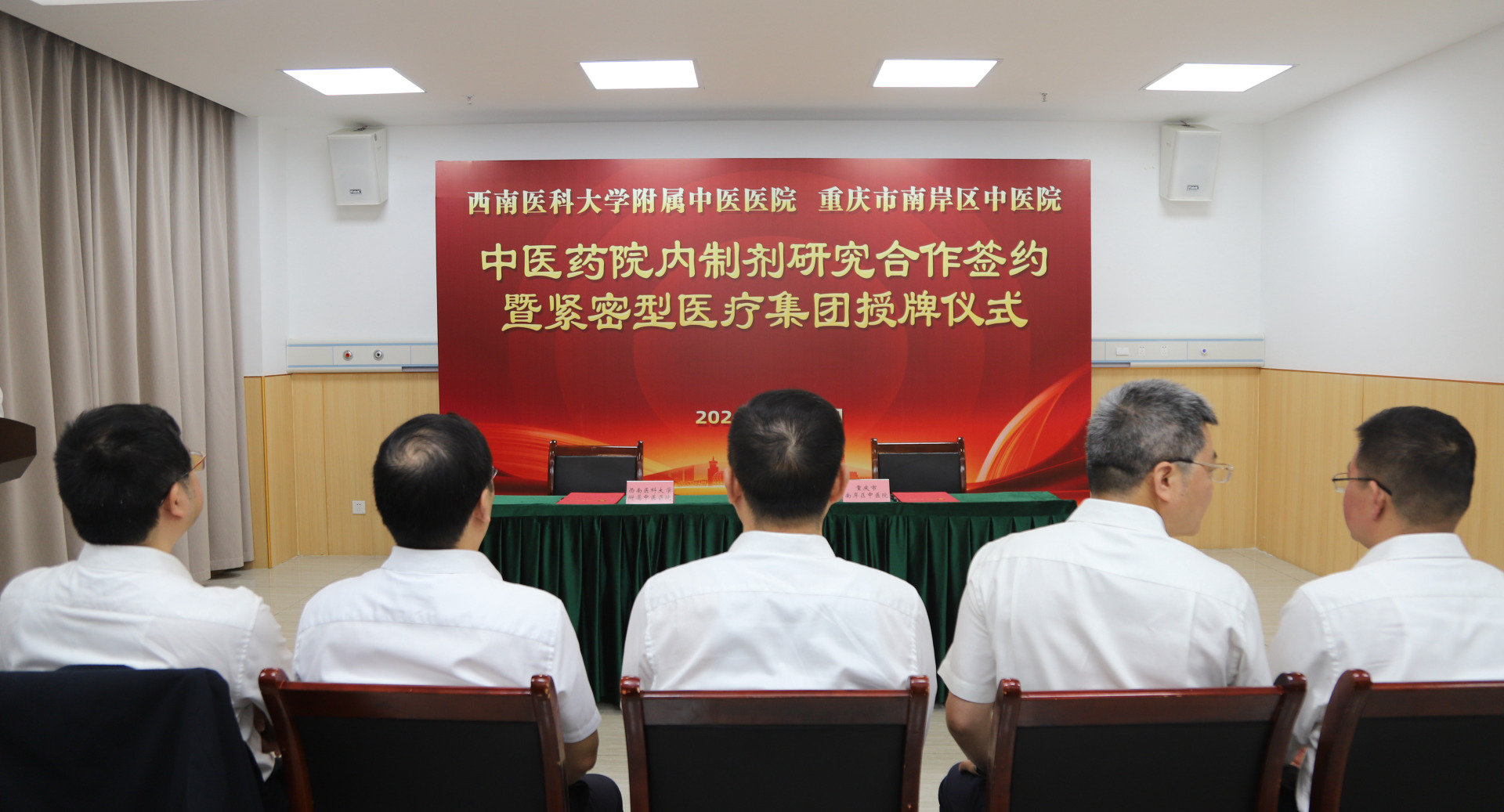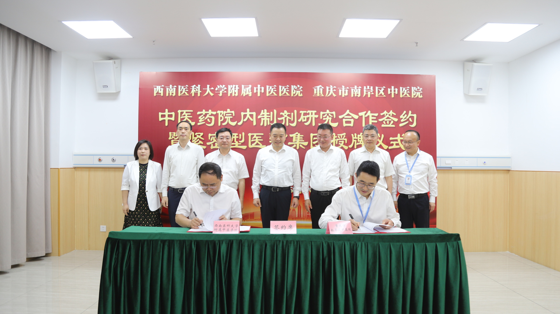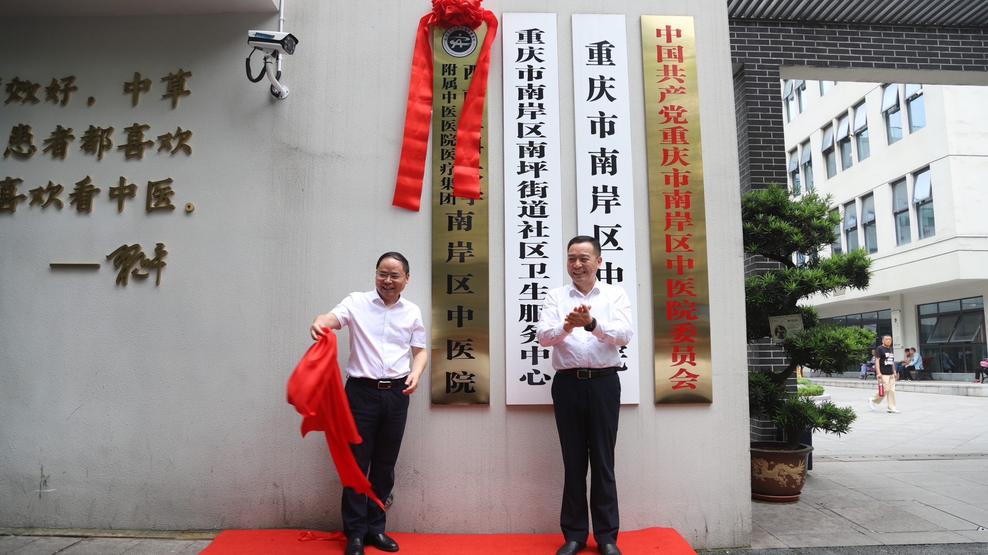 仪式上,刘建、邓伟代表双方医院签订了《中医药院内制剂研究合作框架协议》。随后,刘建与刘露共同为西南医科大学附属中医医院医疗集团成员单位重庆市南岸区中医院揭牌。