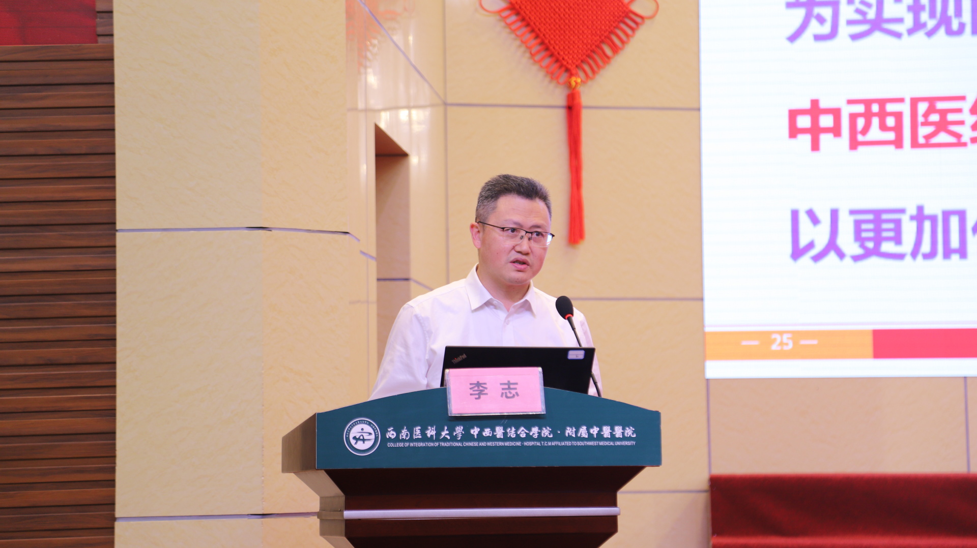 李志讲话,他代表医院党委向受到表扬的集体和个人、向辛勤工作的护理同道们、向无私支持的护士家人们致以热烈的祝贺、节日的祝福和诚挚的感谢,并从护理管理日益精细、中医护理特色彰显、人才培养成效显著、护理科研成果丰硕、护理活动丰富多彩等方面肯定了2023年护理工作取得的成绩。他指出,护士是人民生命健康的守护者,是新时代最可爱的人,护理工作是医院医疗工作的重要组成部分,医院的事业发展离不开全体护理同仁的共同努力、辛勤付出以及无私奉献。希望全体护理人员继续立足岗位、开拓奋进,全面提升护理学科水平,发展护士队伍;充分发挥中医护理特色,优化护理服务;勇于创新现代护理举措,打造护理品牌,在南丁格尔誓言的引领下,为实现医院“国内一流、国际知名的中医、中西医结合现代化研究型医院”的愿景接续奋斗,以更加优异的成绩向中华人民共和国成立75周年献礼。