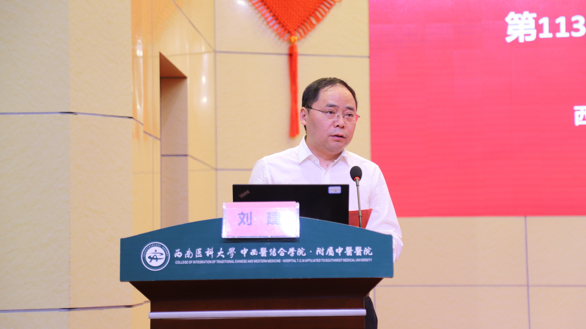 刘建致辞,他代表医院向辛勤工作在一线的护理人员致以节日的问候,向被表扬的先进集体和个人表示热烈的祝贺,向虽已退休但仍继续关心、支持医院护理事业发展的护理前辈们致以崇高的敬意,并肯定了护理队伍在过去一年取得的成绩。他指出,护理队伍是医院不可或缺的重要力量,是医院里最美的天使,她们无私的爱心、专业的技术、温情的关怀,为患者提供无微不至的护理服务,用实际行动诠释了南丁格尔精神。今年是新中国成立75周年,也是完成“十四五”规划的关键之年,医院也正处于内涵式高质量发展的第三次创业新阶段,他希望,全院护理人员坚守初心,做生命健康的守护者;追求卓越,做专业敬业的践行者;热爱生活,做乐享人生的追求者,以病人的健康己任,用汗水浇灌理想,用努力成就梦想,助推医院事业高质量内涵式发展。他表示,医院将一如既往支持和保障护理工作,为她们创造更好的工作环境和发展空间,让全院护理人员在辛勤耕耘的同时拥有更多的幸福感、获得感和归属感。