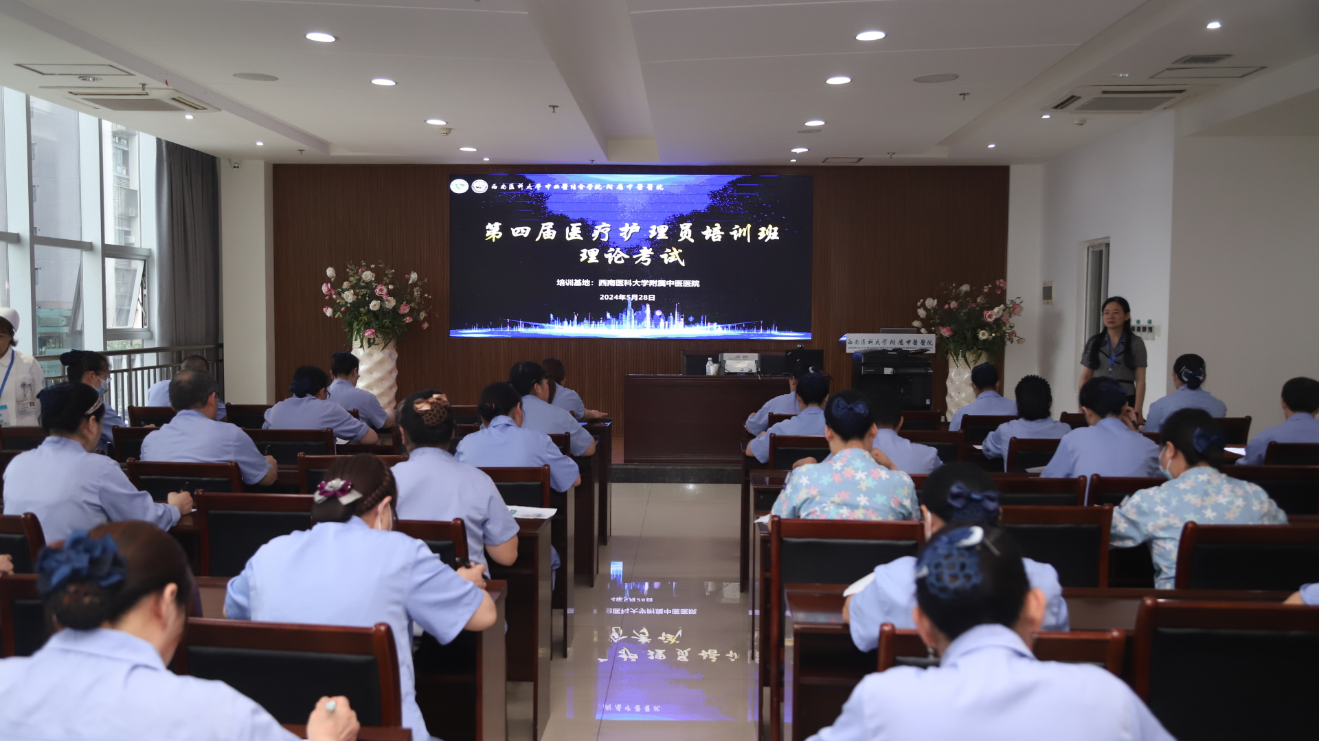 2024年5月28日,按照《关于开展四川省2024年第一期医疗护理员考试及培训机构质量评价工作的通知》要求,我院第四期34名医疗护理学员参加了四川省护理学会组织的理论结业考试。本次考试采用纸质试卷答题的形式,四川省护理学会组织了网络线上巡考及专家现场巡考督查。
