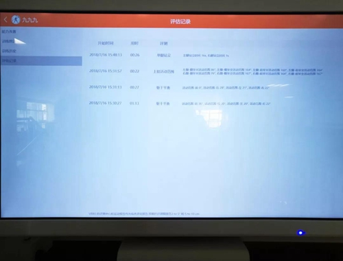 还可以在治疗前利用智能人体运动捕捉技术,对患者进行康复评定,并在软件中指定需要训练的部位,建立运动处方,完成一个时间段的运动训练后,临床报告会自动显示训练数据。