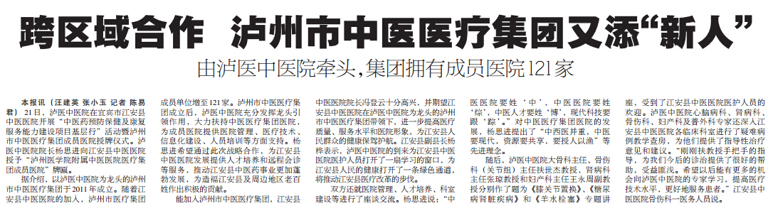 下一条:《泸州晚报》2015年1月9日 三甲医院专家 服务屏山基层群众