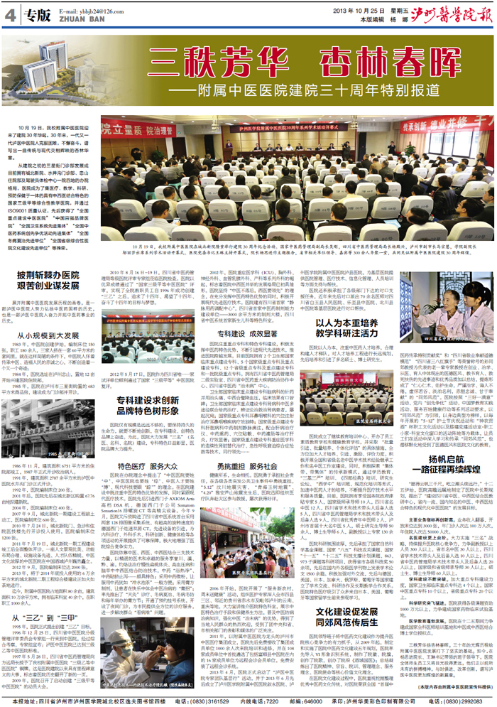 上一条:《中国中医药报》11月13日 泸州医学院附属中医医院在叙永县中医医院举行“中医药预防保健及康复能力建设项目基层行活动”