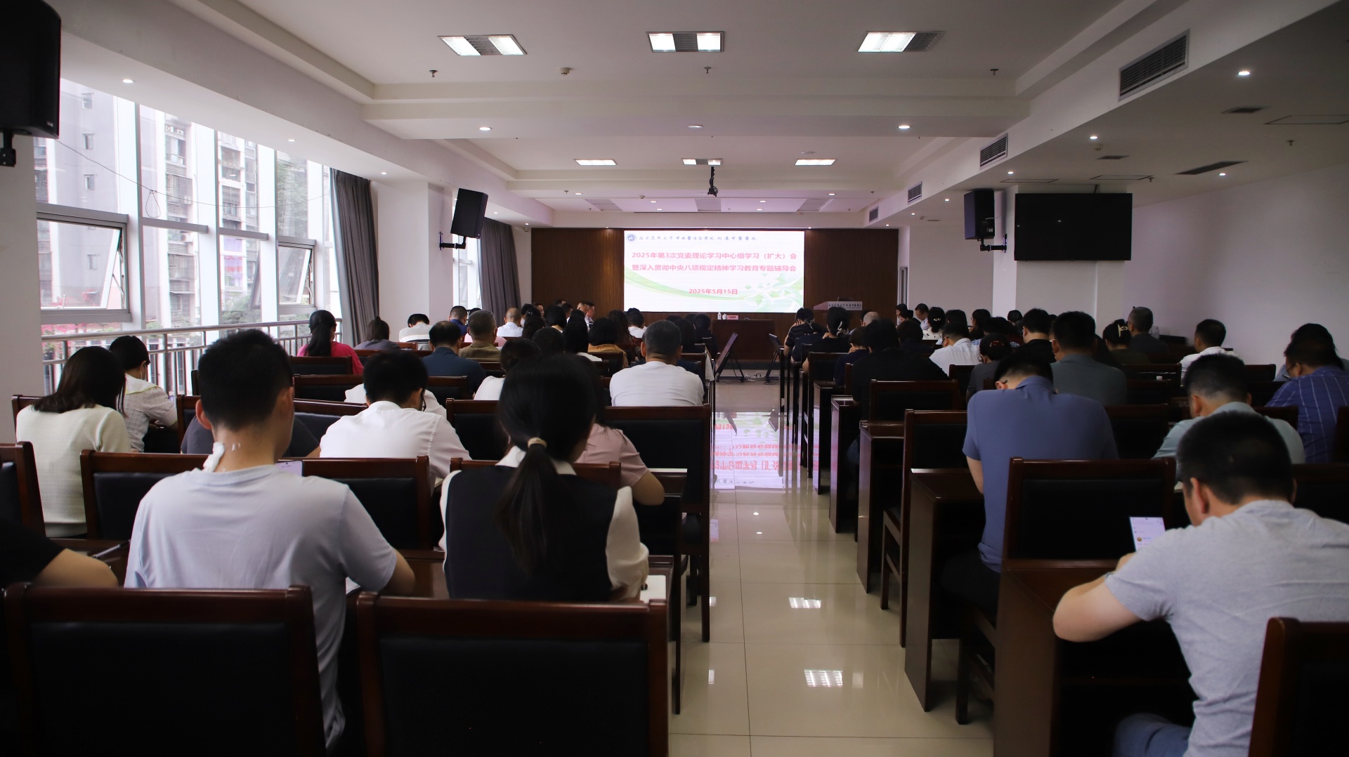 2025年5月15日,医院在第二住院大楼1号会议室召开2025年第3次党委理论学习中心组学习(扩大)会暨深入贯彻中央八项规定精神学习教育专题辅导会。医院处科级干部、党支部书记、部分重点岗位人员参加了会议,会议由医院党委书记代天祥主持。