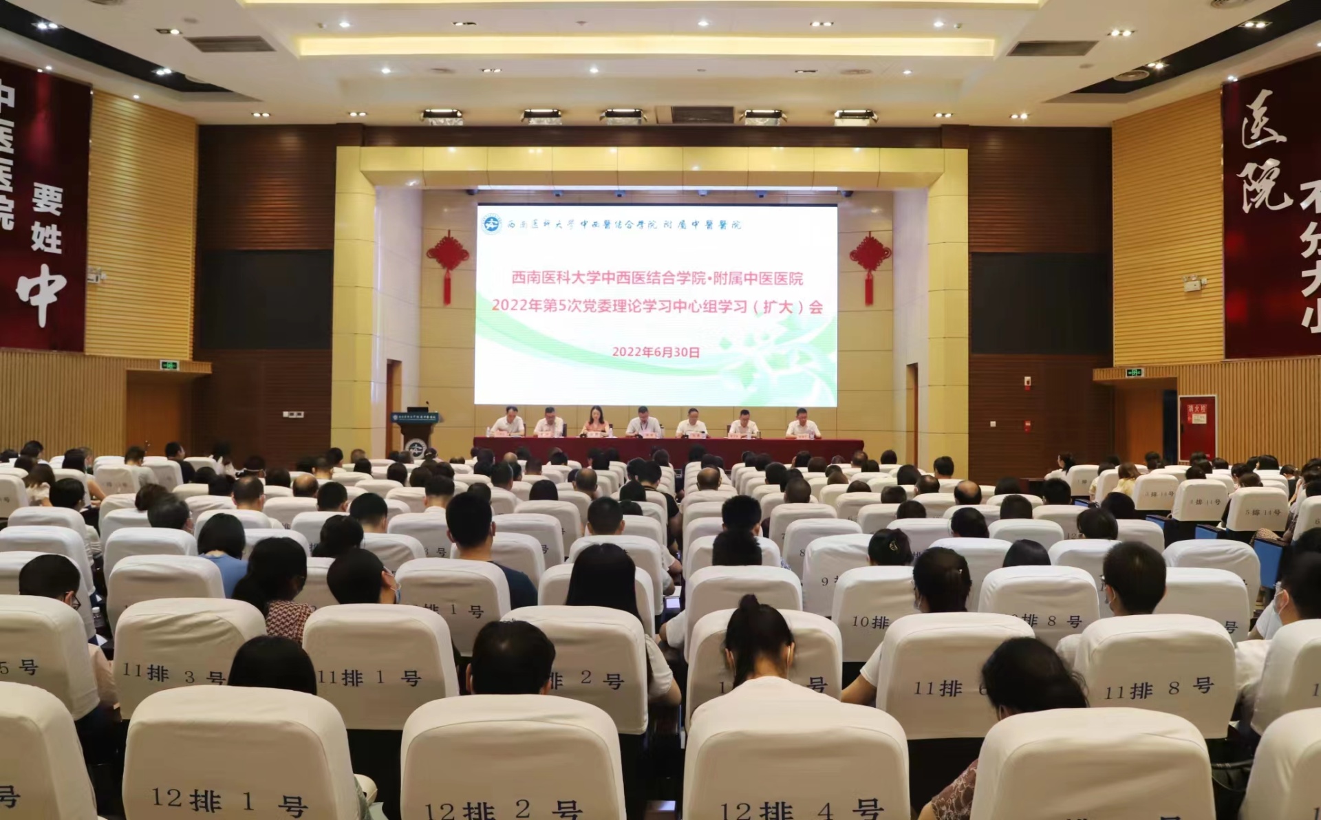 2022年6月30日,我院在第二住院大楼学术演讲厅召开了2022年第5次党委理论学习中心组学习(扩大)会暨第二季度党风行风专题教育会,全体处级干部、专职组织员、专职学生思政导师、科级干部、临床及辅检辅助科室主任(正副职)、护士长(正副职)、基础及临床教研室主任、党支部书记参加了本次会议,会议由党委书记李志主持。