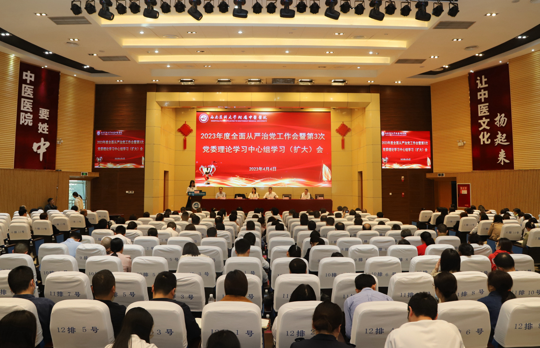 2023年4月4日,我院召开2023年全面从严治党工作会暨第三次党委理论学习中心组学习(扩大)会,全体处级干部、专职组织员、专职学生思政导师、科级干部、临床及辅检科室主任护士长(正副职)、基础及临床教研室主任、党支部书记参加了会议。会议由医院党委书记李志主持。