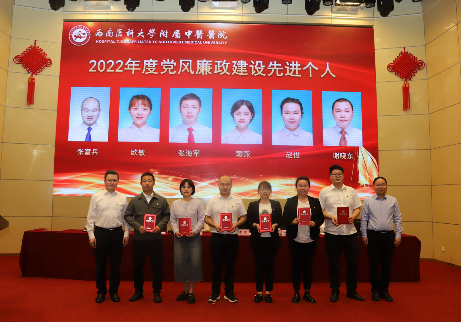 随后,徐茜宣读了《2022年党风廉政建设先进集体及先进个人表彰决定》,党委书记李志、院长刘建为2022年党风廉政建设责任制落实情况考评“先进集体”“先进个人”颁发了奖牌和荣誉证书。