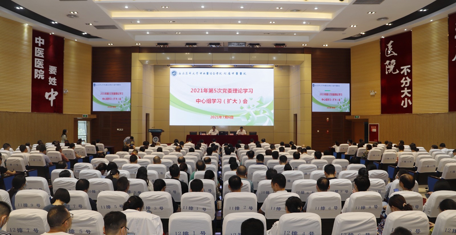 2021年7月6日,我院在第二住院大楼学术演讲厅召开了2021年第5次党委理论学习中心组学习(扩大)会,医院处级干部、专职组织员、专职学生思政导师、科级干部、职能部门负责人、临床及辅检辅助科室主任(正副职)、护士长(正副职)、基础及临床教研室主任、党支部书记参加了本次会议,会议由医院党委书记李志主持。