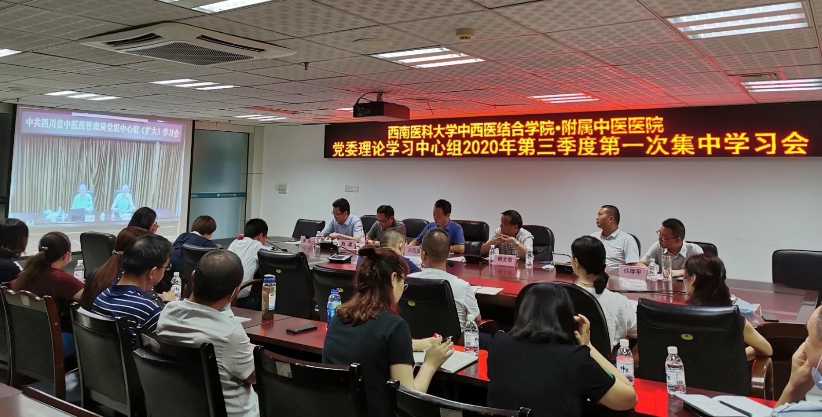 2020年7月15日,我院在岐黄厅召开了党委理论学习中心组2020年第三季度第一次集中学习会,全体在家院领导、职能部门负责人参加了本次会议,会议由党委副书记·纪委书记赵国强主持。