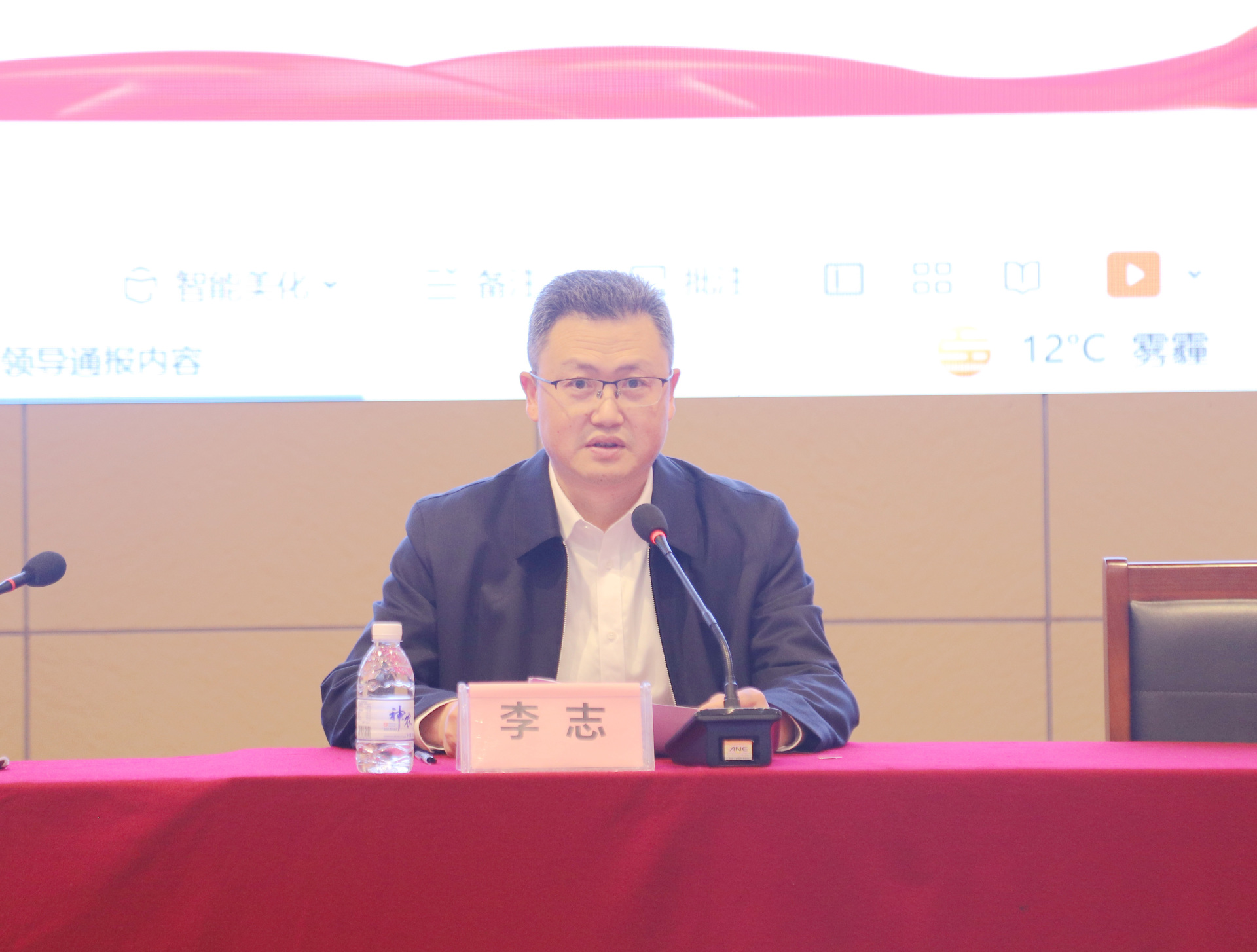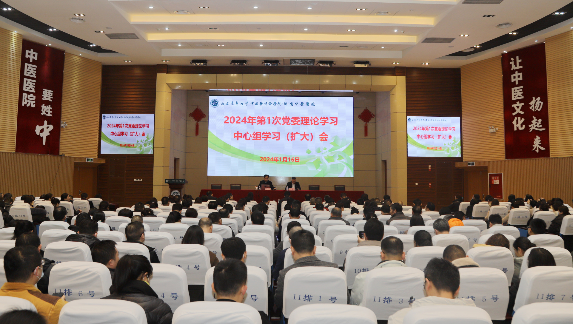 2024年1月16日,我院在第二住院大楼学术演讲厅召开2024年第1次党委理论学习中心组学习(扩大)会,全体处级干部、专职组织员、专职学生思政导师、科级干部、临床及辅检科室主任护士长(正副职)、基础及临床教研室主任、党支部书记参加了会议。会议由医院党委书记李志主持。