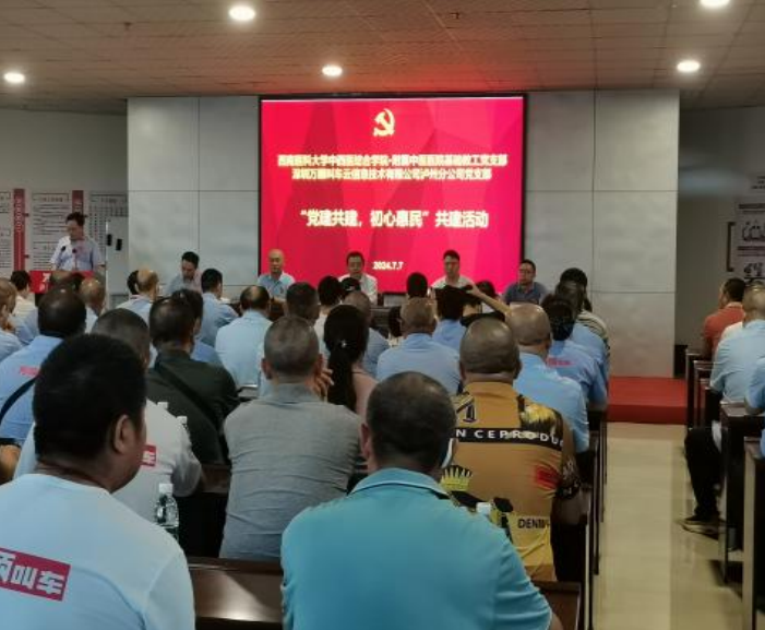 2024年7月7日,我院基础教工党支部与深圳万顺叫车云信息技术有限公司泸州分公司(万顺叫车)党支部开展“党建共建,初心惠民”党建活动。学生党总支书记谢晓东、万顺叫车泸州分公司总经理余庆、双方党支部同志及员工参加了活动。活动由万顺叫车泸州分公司副总经理陈良建主持。