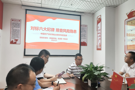 7月11日,党办党支部、纪监审党支部、宣传统战党支部、保卫工会党支部、财务运营党支部联合开展了“学纪知纪守底线 明纪守纪促担当”党纪学习教育主题党日活动。