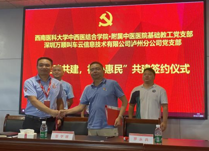 随后,万顺叫车泸州分公司党支部书记高小春、基础教工党支部书记罗永兵就党建与业务等方面的工作进行交流,并签订了共建初步协议。