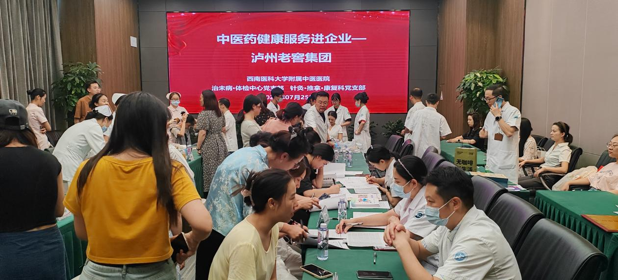 授牌仪式前,治未病·体检中心和针灸·推拿·康复科党支部医务人员为泸州老窖集团员工提供了中医药特色技术服务。