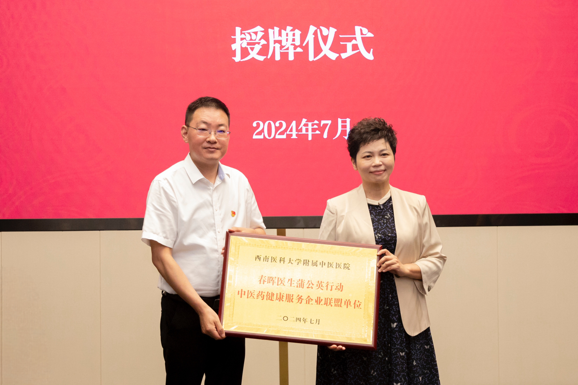 2024年7月25日,我院治未病·体检中心党支部、针灸·推拿·康复科党支部与泸州老窖集团举行了春晖医生蒲公英行动·中医药健康服务企业联盟单位授牌仪式,医院副院长徐厚平,泸州老窖集团常务副总裁、工会主席孙海燕及职工代表,医院相关党支部成员等参加了仪式。