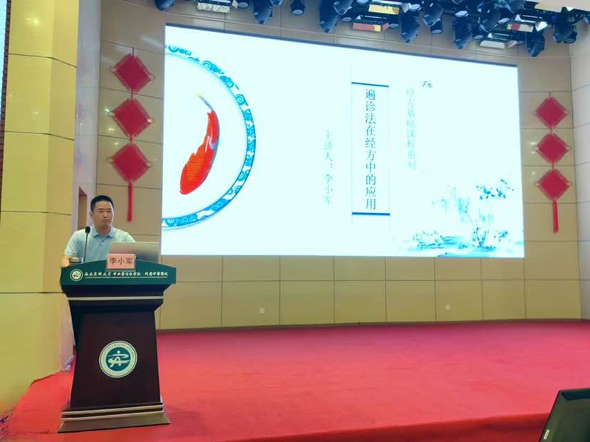会上,李小军副教授以《遍诊法在经方中的应用》为题作了专题讲座。他对经方问诊方法、经方遍诊法(包括明堂阙庭诊法、睑诊法、腹诊法、腿诊法、六经脉诊法)进行了详细讲解,并结合实际病案分享了自己的临床经验,为大家提供临床辨证和治疗新思路,受到与会人员的热烈欢迎。