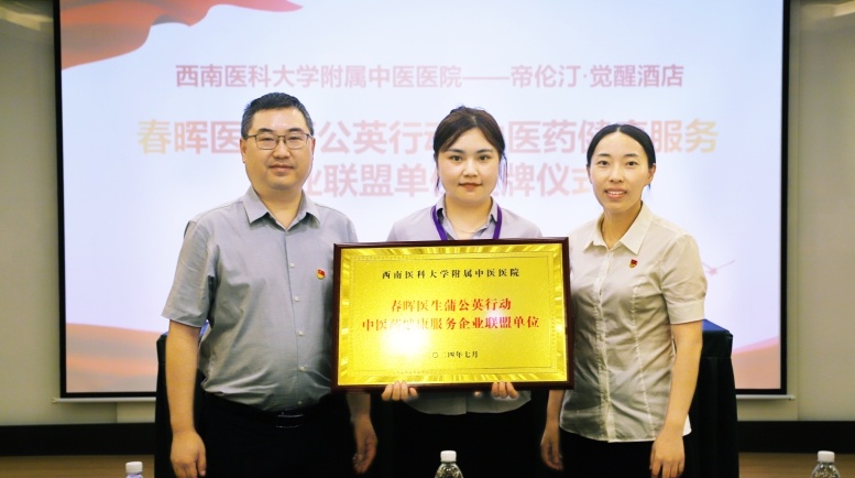 2024年7月23日,我院新生儿科党支部与泸州市龙马潭区帝伦汀·觉醒酒店举行了春晖医生蒲公英行动·中医药健康服务企业联盟单位授牌仪式,医院副院长张建堂,伦汀·觉醒酒店全体党员和职工,我院新生儿科党支部全体党员等参加了仪式。
