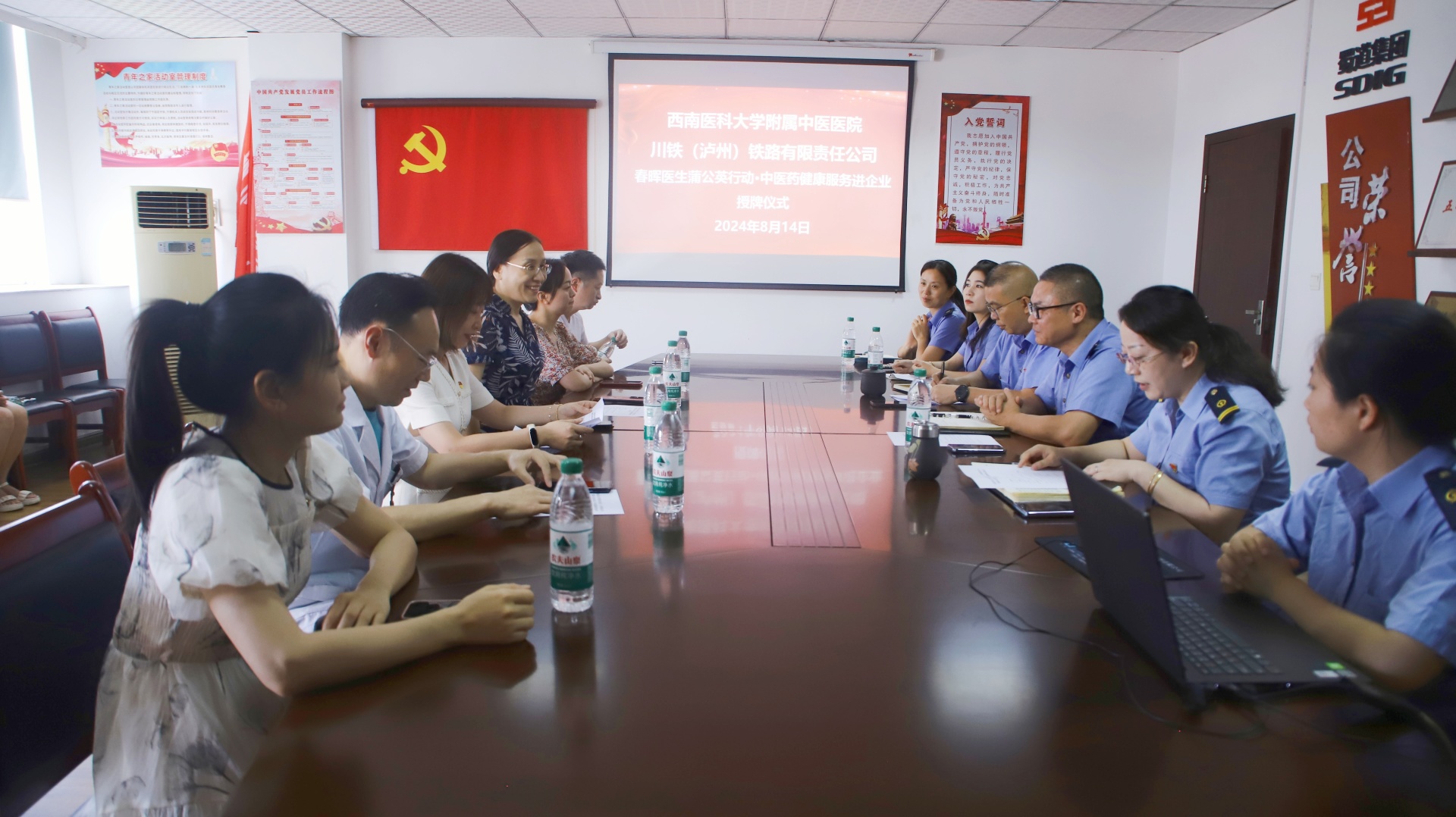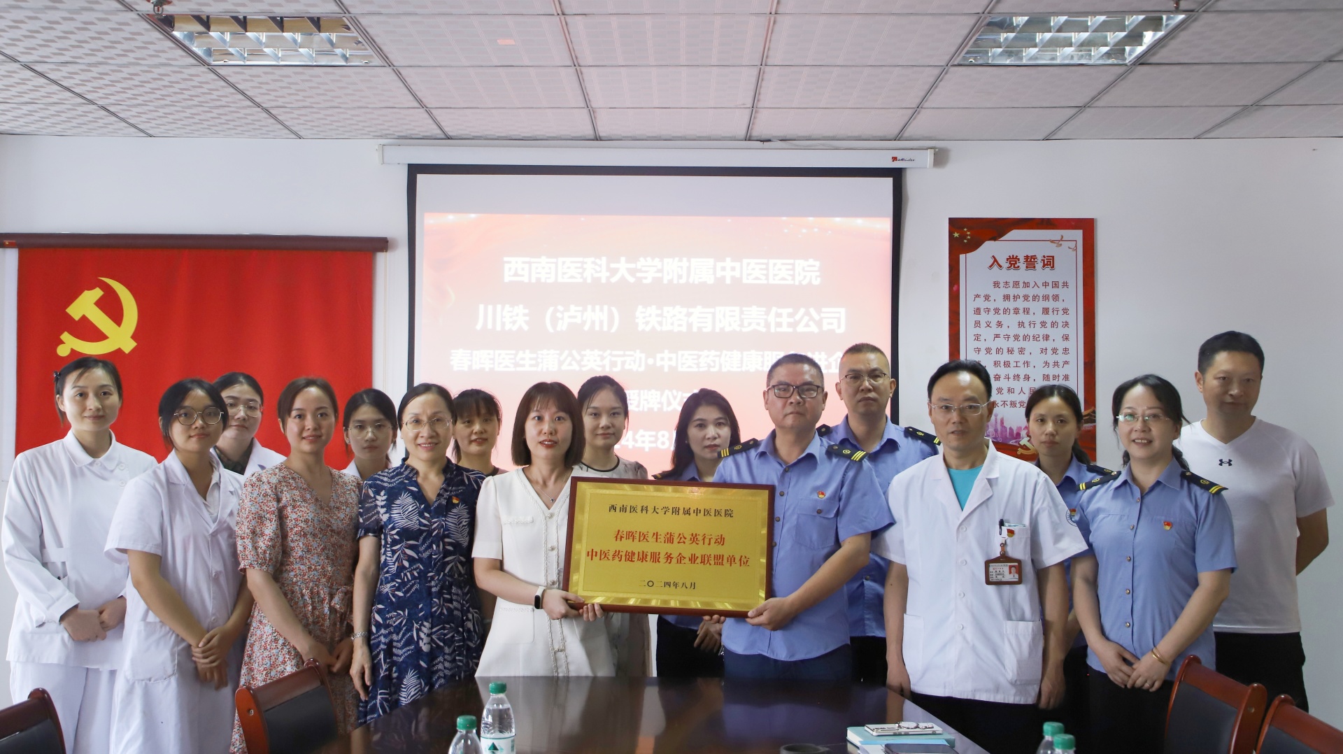2024年8月14日,我院治未病·体检中心党支部、针灸·推拿·康复科党支部与川铁(泸州)铁路有限责任公司举行了春晖医生蒲公英行动·中医药健康服务企业联盟单位授牌仪式,医院内科党总支书记胡琼丹,川铁(泸州)铁路有限责任公司副总经理陈焱及职工代表,医院相关党支部成员等参加了仪式。
