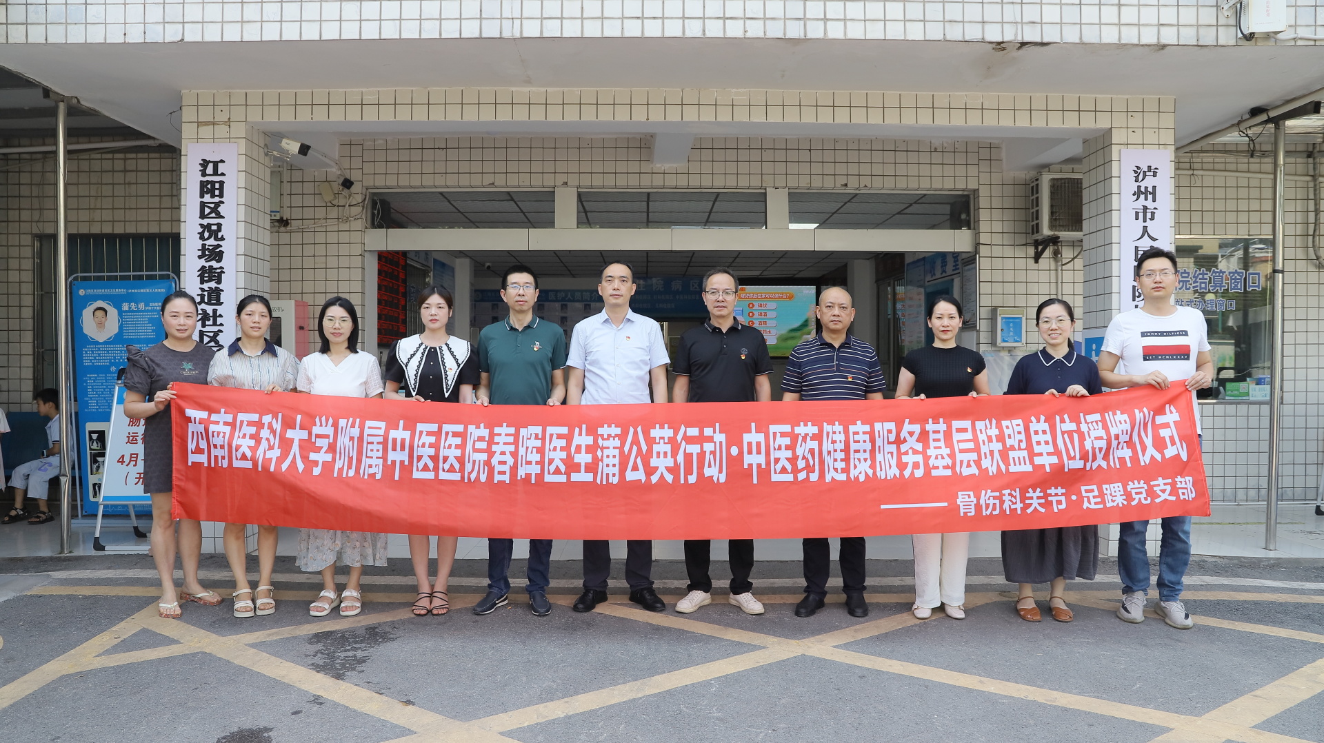 2024年8月21日,我院骨伤科关节·足踝党支部与江阳区况场社区卫生服务中心举行了春晖医生蒲公英行动·中医药健康服务基层联盟单位授牌仪式,医院副院长汪国友,江阳区况场社区卫生服务中心院长李家湛,医院相关党支部成员及况场社区卫生服务中心人员等参加了仪式。
