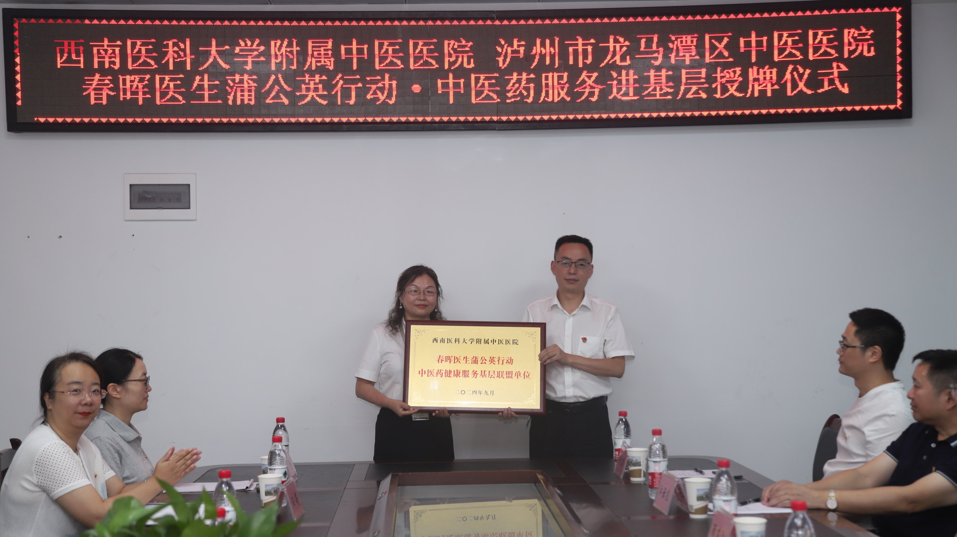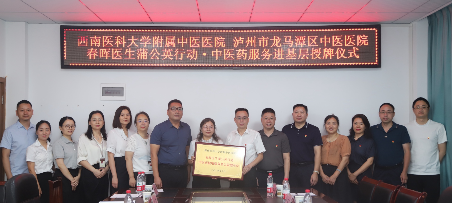 2024年9月12日,我院神经外科党支部与泸州市龙马潭区中医医院举行了春晖医生蒲公英行动·中医药健康服务基层联盟单位授牌仪式,医院党委副书记雷学举、龙马潭区卫生健康局副局长林刚、泸州市龙马潭区中医医院副院长祝焱,我院相关党支部成员及泸州市龙马潭区中医医院部分人员等参加了仪式。