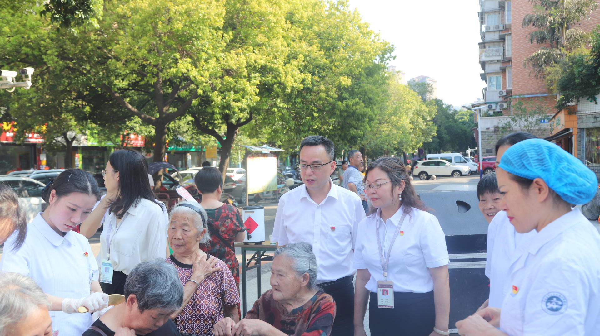 会后,相关党支部人员在龙马潭区中医医院开展了义诊活动。
