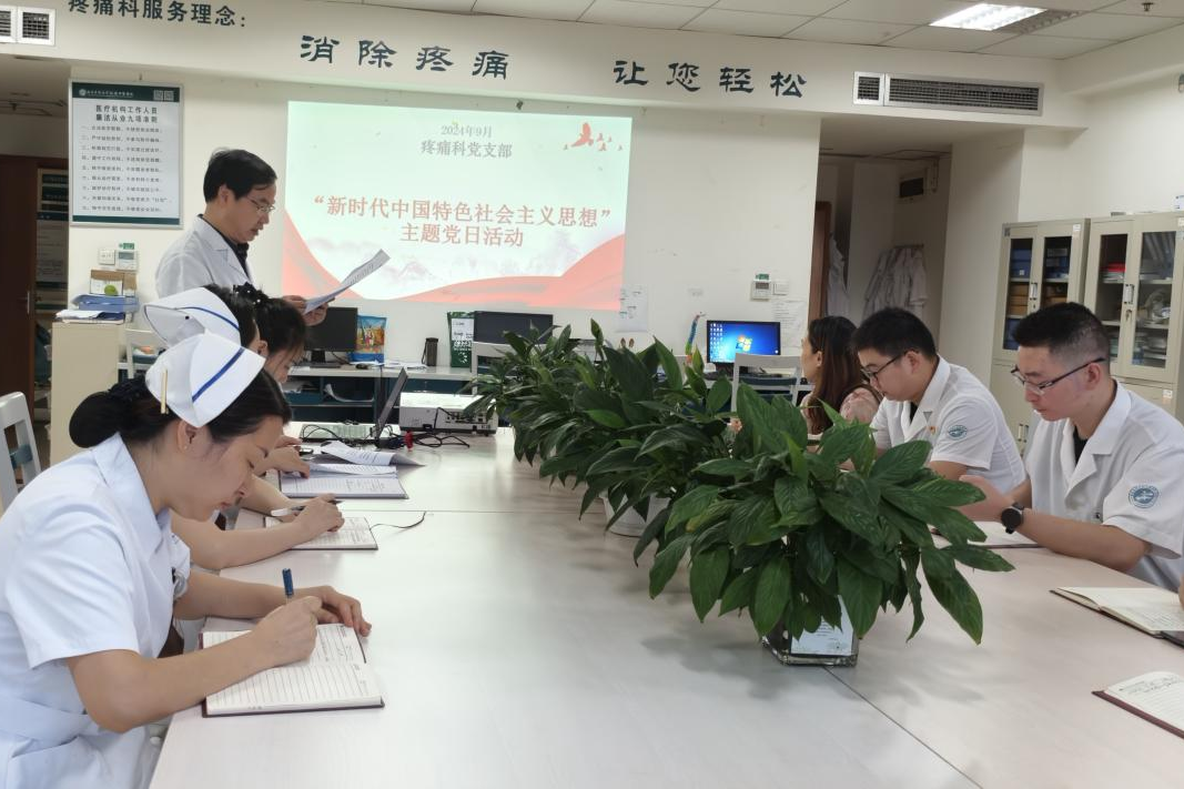 2024年9月23日,疼痛科党支部召开了党员大会,全体党员、预备党员及入党积极分子参加了会议。会议由党支部书记刘庆同志主持。