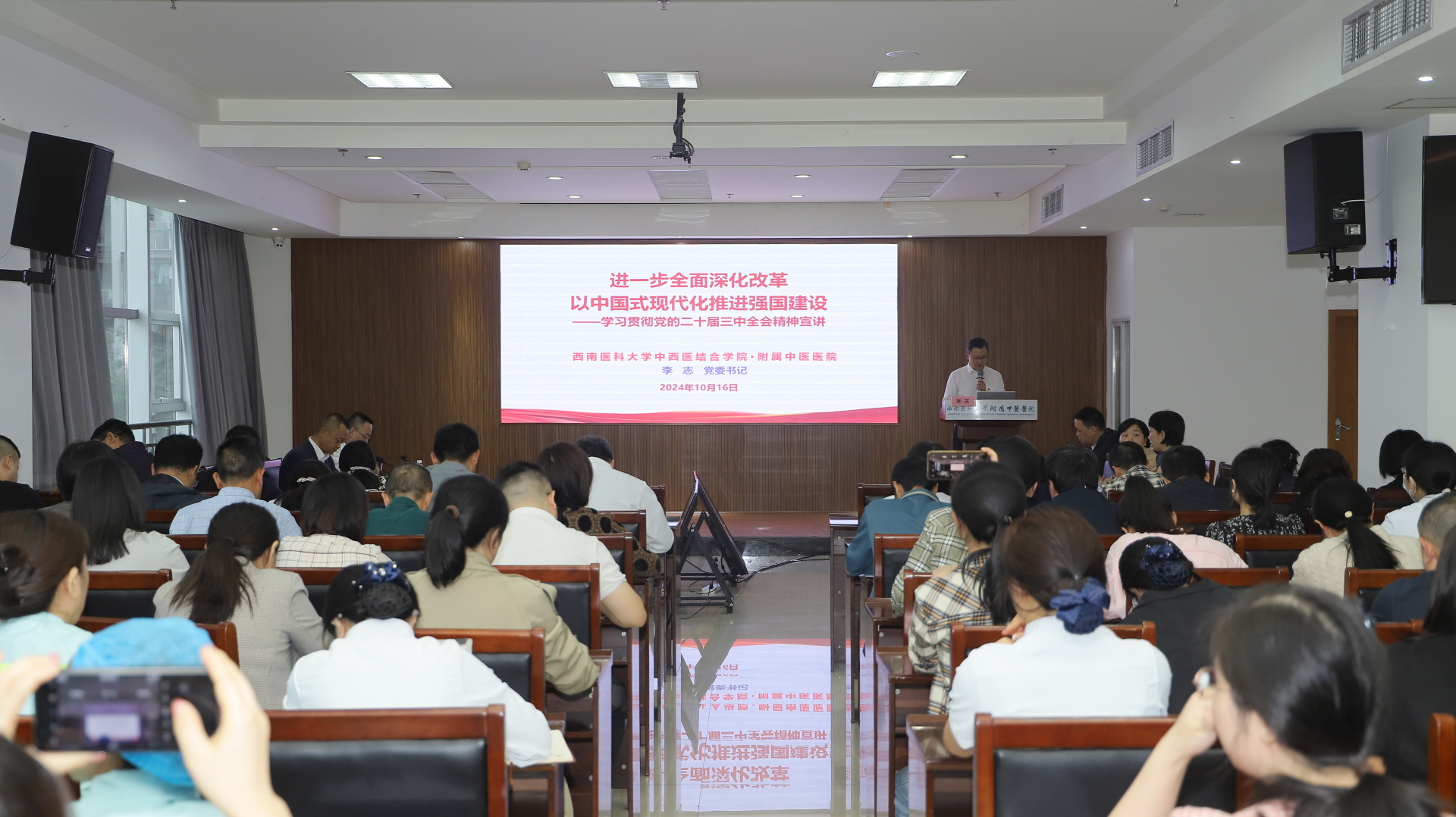 会上,党委书记李志讲了《进一步全面深化改革 以中国式现代化推进强国建设——学习贯彻党的二十届三中全会精神宣讲》专题党课,他从深刻把握党的二十届三中全会的重大意义、党和国家事业取得的重大成就、深刻把握进一步全面深化改革的总体要求和重大举措、深刻把握抓好全会精神贯彻落实的基本要求等五个方面作了讲解,并就医院各党总支、党支部学习贯彻党的二十届三中全会精神提了具体要求。