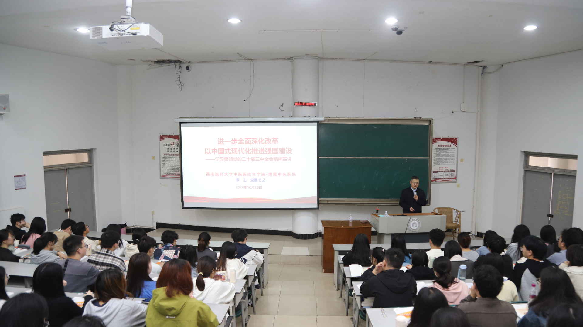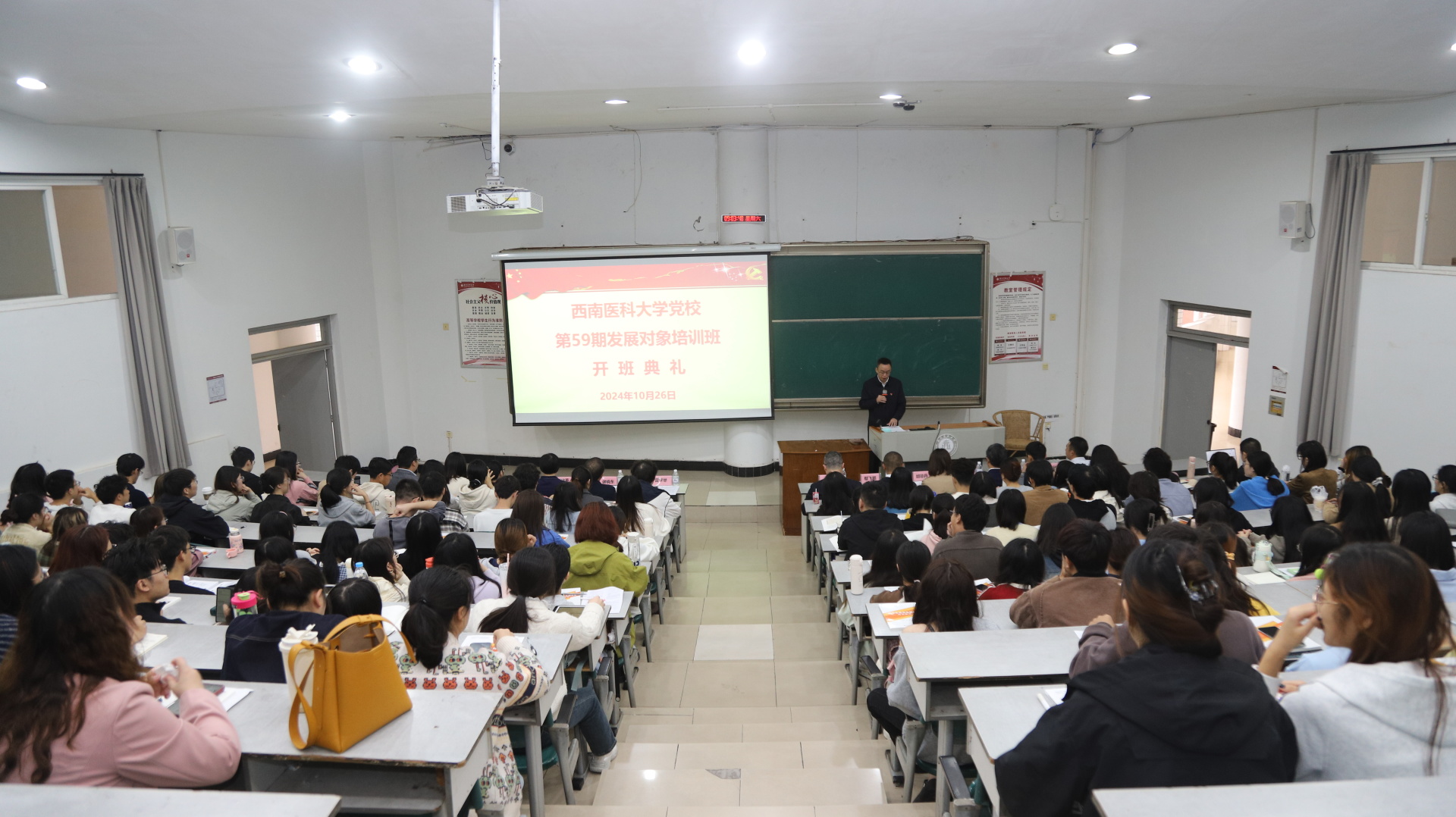 2024年10月26日,西南医科大学党校第59期(中西医结合学院分党校第2期)发展对象培训班开班典礼在荟文楼201举行。中西医结合学院•附属中医医院党委书记、分党校校长李志,党委副书记、分党校副校长雷学举,党委副书记、纪委书记、分党校副校长鄢飞鹏,党校校务委员、送培院系指导老师、培训班指导老师及150名发展对象参加了开班典礼。开班典礼由雷学举主持。