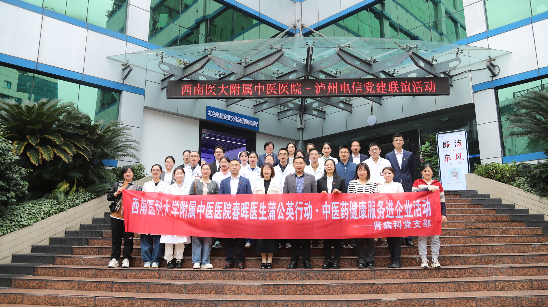 授牌仪式后,与会人员参观中国电信泸州分公司红色展厅;医院肾病科党支部陈定国作了《中西医结合养肾之道》健康讲座,相关党支部人员为中国电信泸州分公司职工进行了义诊。