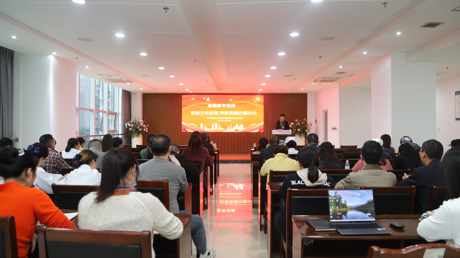 2024年11月6日,我院外科党总支组织下辖科各党支部党员及科室员工等开展了主题讲座。西南医科大学马克思主义学院教职工一支部书记、教学四部常务副主任高君,我院副院长张磊参加了会议。会议由张磊主持。