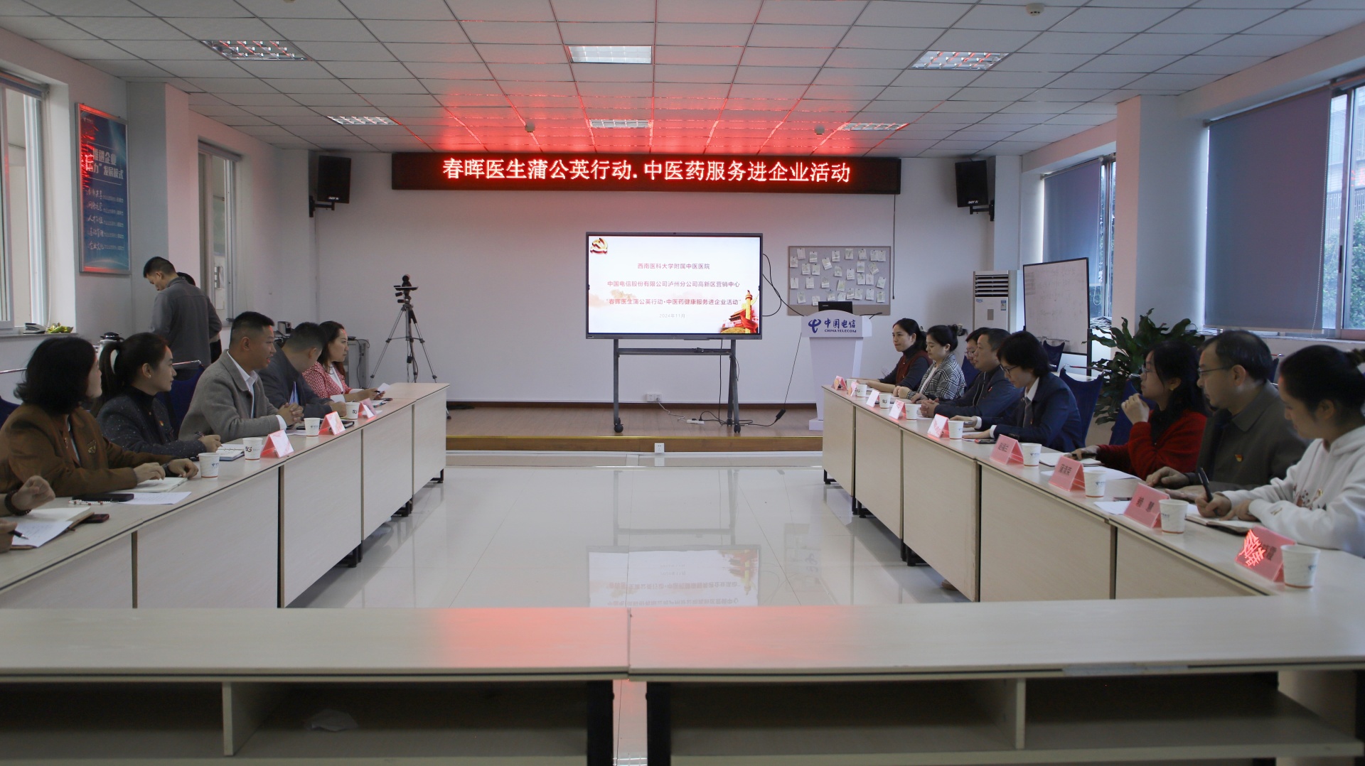 2024年11月12日,我院药剂科党支部与中国电信股份有限公司泸州分公司高新区营销中心举行了春晖医生蒲公英行动·中医药健康服务企业联盟单位授牌仪式,医院副院长董丽,中国电信股份有限公司泸州分公司高新区营销中心党支部书记林威及职工代表,医院相关党支部成员等参加了仪式。
