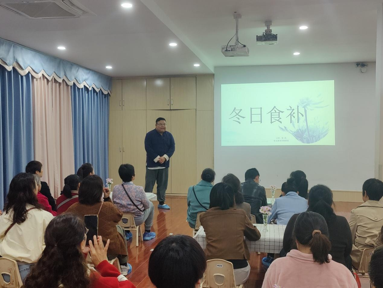 活动上,李明静介绍了本次活动的目的和内容;张浩讲解了冬季养生的注意事项与禁忌,对药膳调理作了介绍,演示了治疗小儿发烧的头面部推拿手法并对常用的预防保健穴位作了讲解。