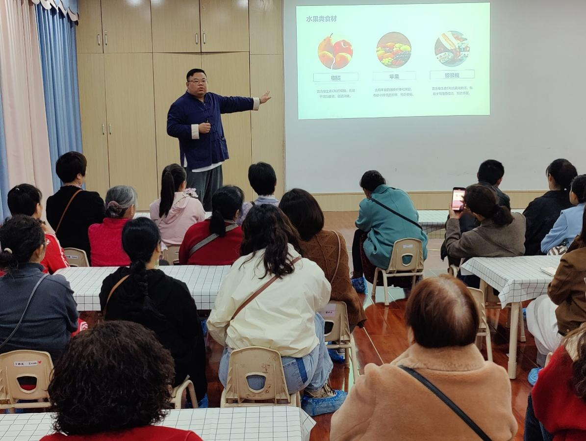 2024年11月7日,我院学生党总支在漫卡巴学园幼儿园举行了主题为“冬日食补”的中医知识养生讲座。学生党总支书记谢晓东、漫卡巴学园幼儿园园长李明静、针灸·推拿·康复科医师张浩、相关党支部成员等30余人参加了活动。
