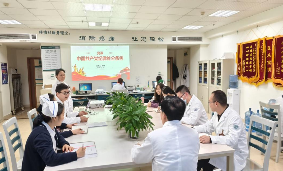 11月25日,疼痛科党支部召开第三季度学习会。会上,李群同志领学了《中国共产党纪律处分条例》新修订内容。党支部书记刘庆对支部近期工作作了安排。