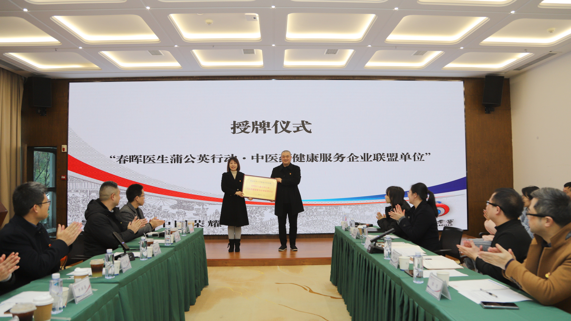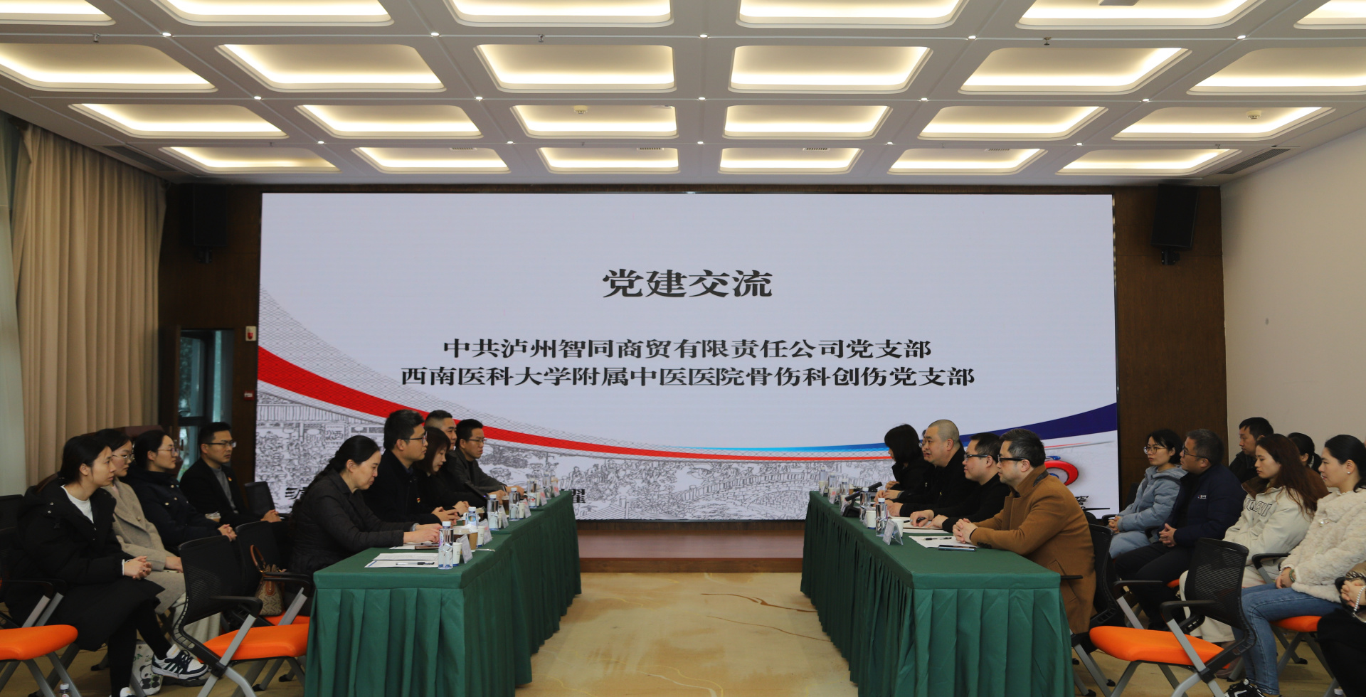 2024年12月9日,我院骨伤科创伤党支部与泸州智同商贸有限责任公司党支部在泸州老窖党群服务中心举行了春晖医生蒲公英行动·中医药健康服务企业联盟单位授牌仪式。医院内科党总支书记胡琼丹,泸州智同商贸有限责任公司董事长、党支部书记颜成文,公司职工代表以及医院相关党支部成员等参加了仪式。