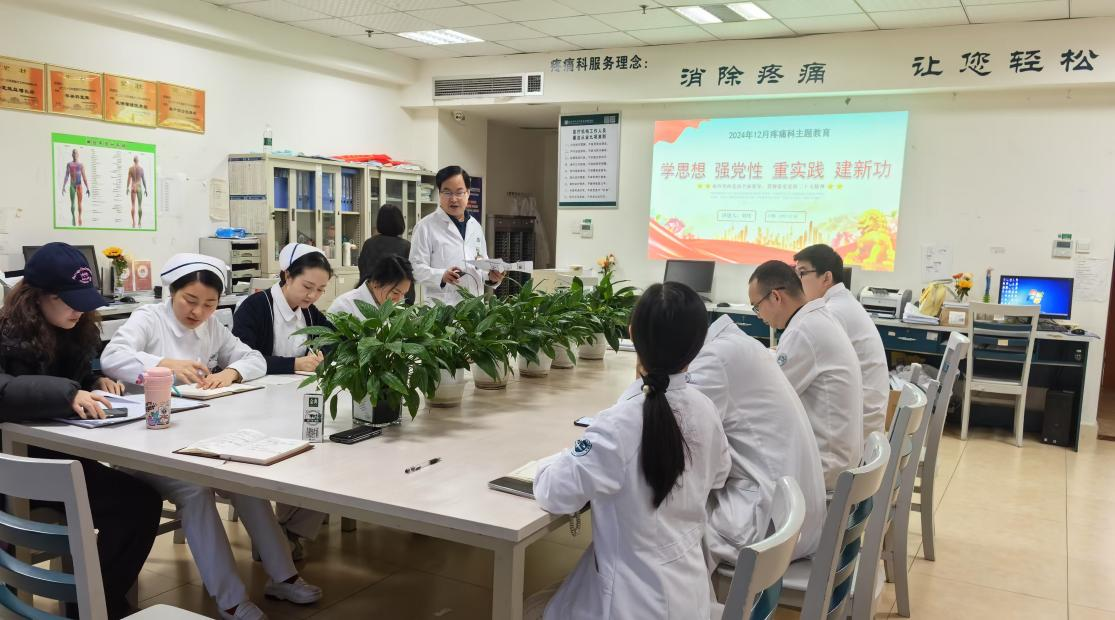 12月16日,疼痛科党支部开展了“学思想 强党性 重实践 建新功”主题党日活动,党支部书记刘庆同志领学了习近平总书记的重要文章《必须坚持自信自立》;与会党员同志结合工作实际,围绕“学思想 强党性 重实践 建新功”主题进行了交流。