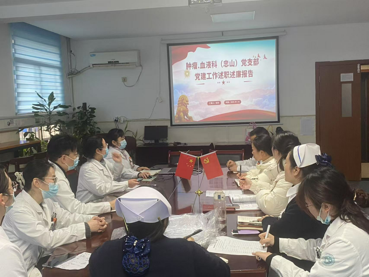 2025年1月14日,肿瘤·血液病科(忠山)党支部开展了主题党日活动。会上,党支部书记张燕同志作了2024年党支部工作情况总结并领学了党纪学习教育及党风廉政相关内容;与会同志围绕如何开展2025年度党支部工作进行了讨论。