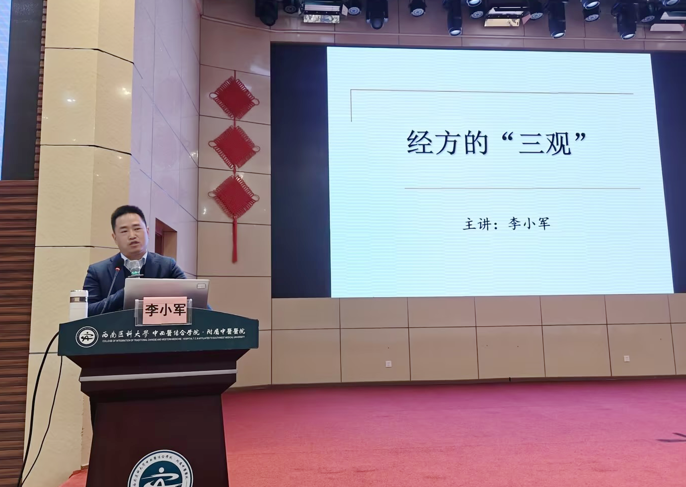 会上,肾病科李小军副教授以《经方的“三观”》为题作了讲座。他从表里津液正邪观考、表里津液正邪观释、表里津液正邪观鉴等方面,对经方的表里观、津液观、正邪观进行了详细的讲解,并结合经典病案分享了自己的临床经验。