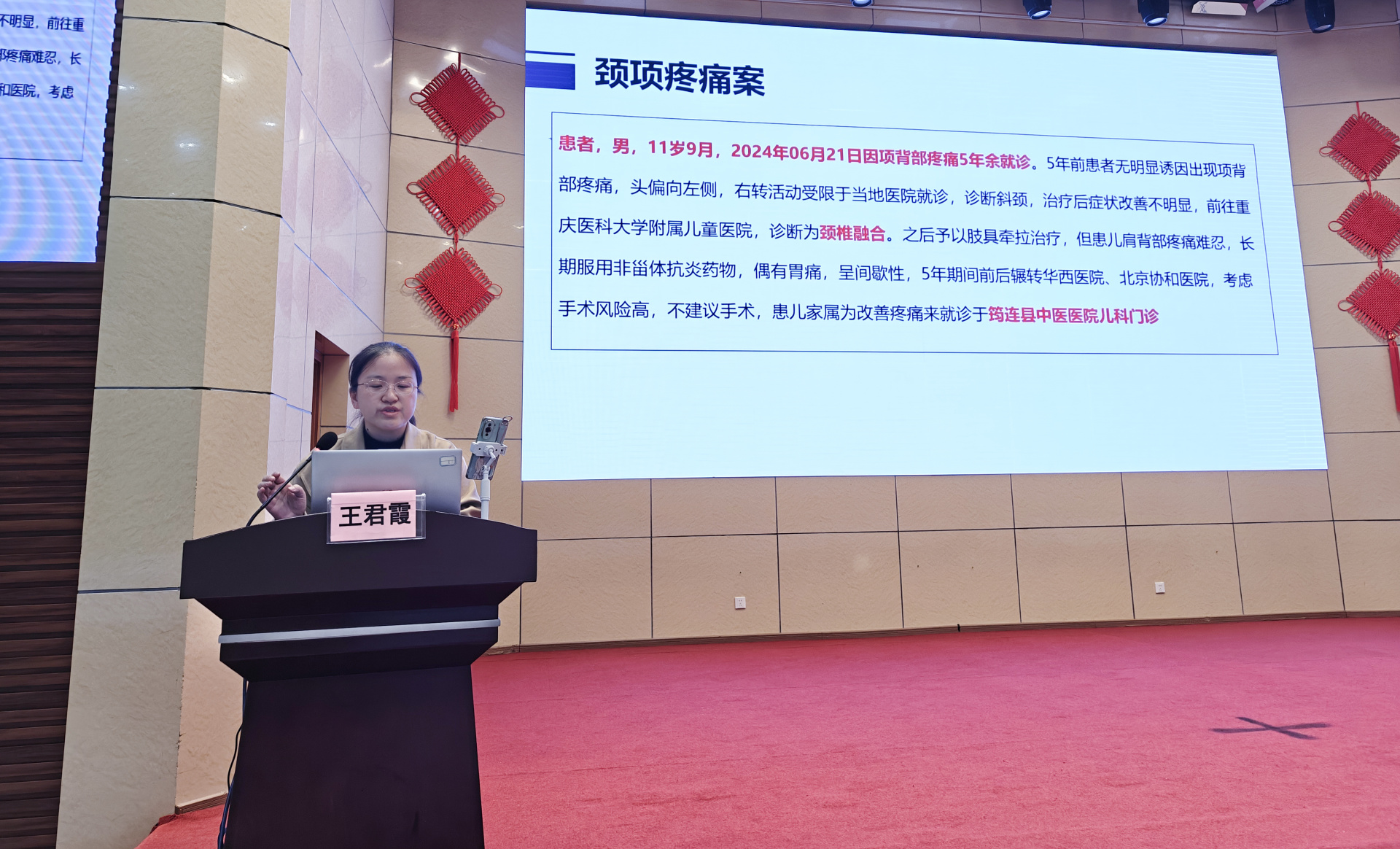 会上,儿童诊疗中心王君霞副教授以《读书、临证、跟师心悟》为题作了讲座。她从自身诊治的两则医案入手,深入浅出,引经据典,围绕临床如何诊病、如何应用中医经典诠释临床证候、如何阅读中医经典书籍、如何跟师等方面进行了详细讲解,受到与会人员的热烈欢迎。